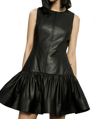 - Halter leather dress in black