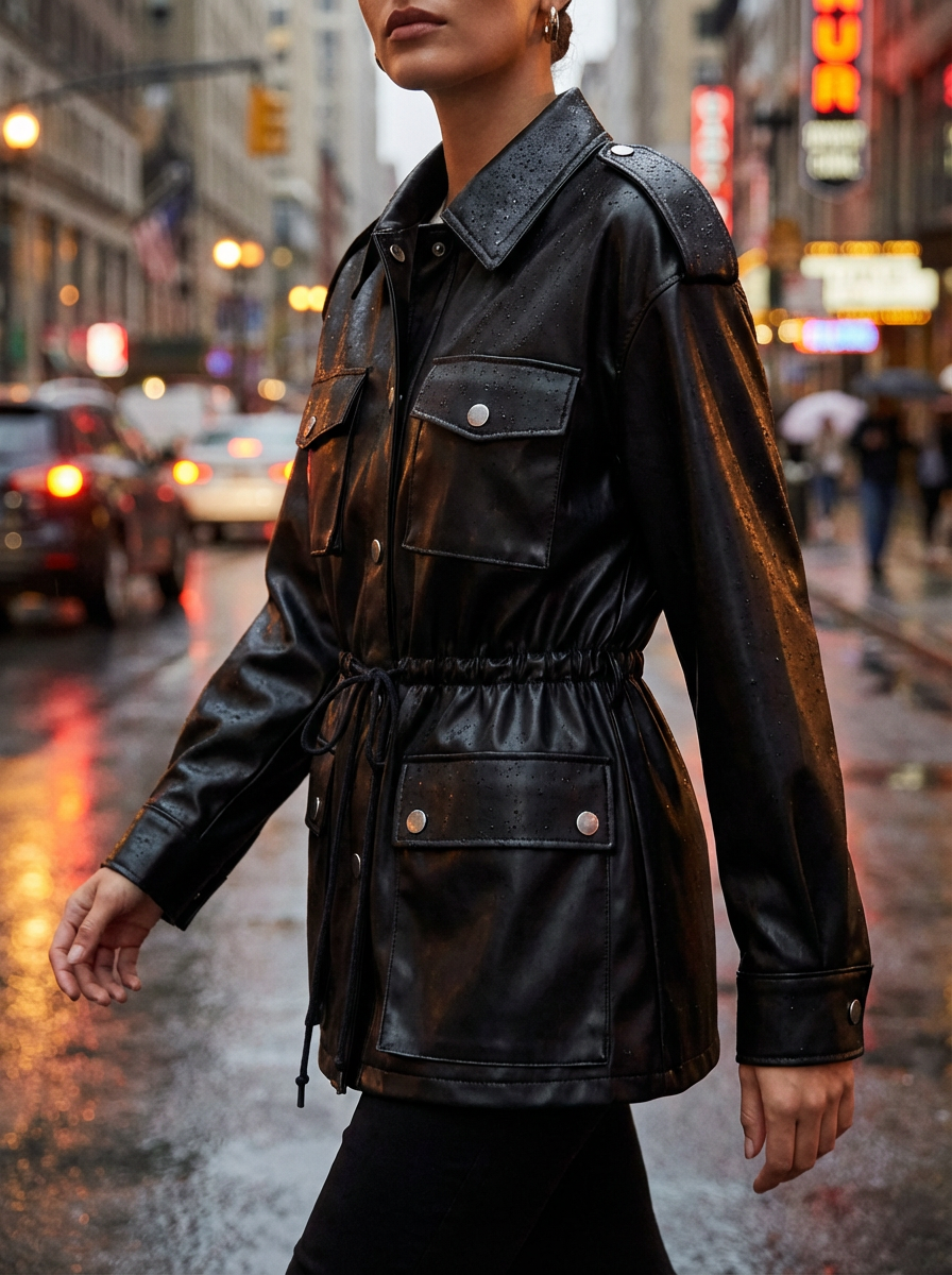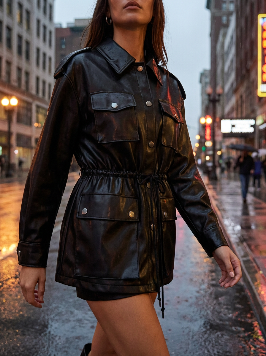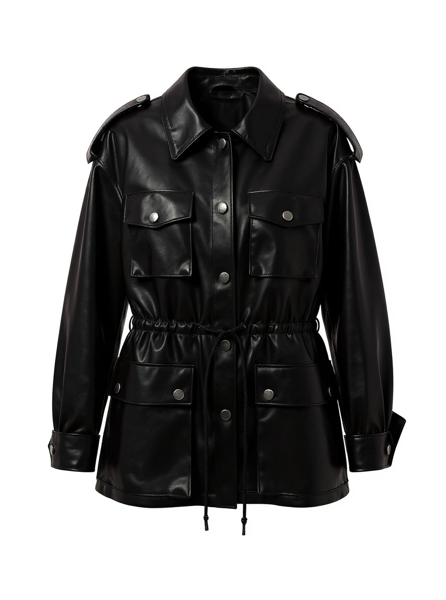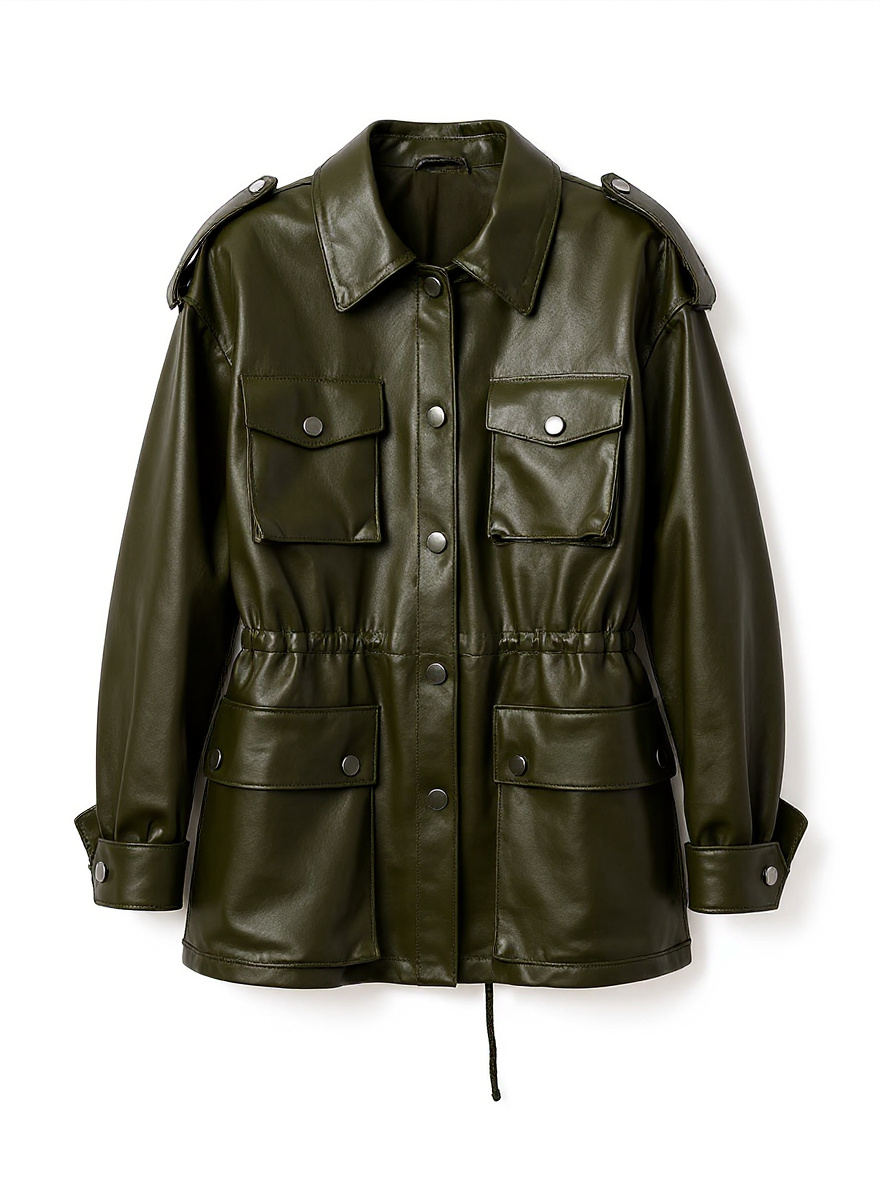 The Arden Jacket is where structure meets effortless edge. Crafted in premium leather, this utility silhouette is designed with a cinched waist that defines the figure while maintaining a confident, modern attitude. Functional cargo pockets, subtle shoulder detailing, and a polished finish give Arden its elevated yet wearable appeal.