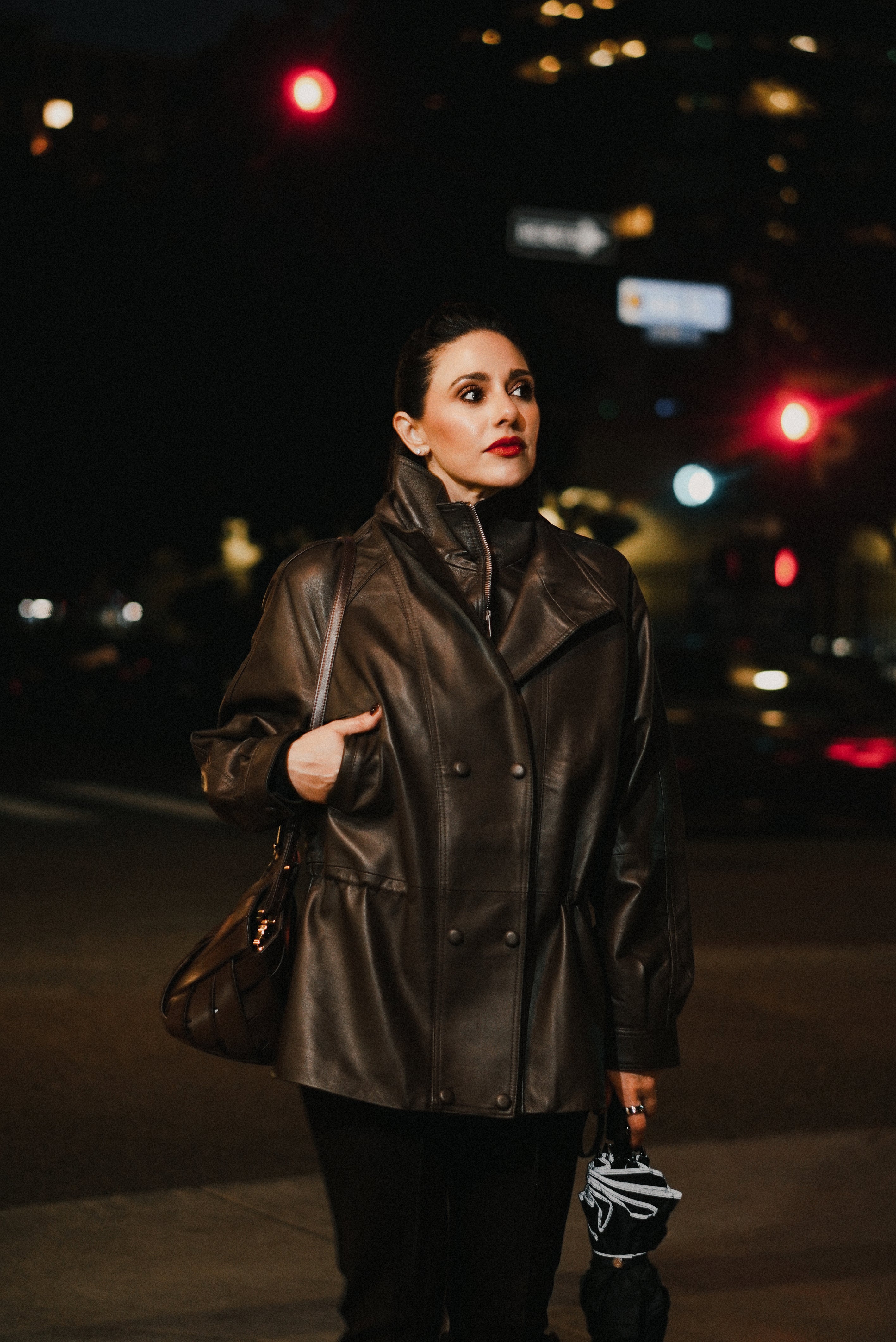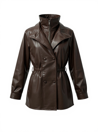 Maeve is a statement in quiet confidence. Crafted from supple genuine leather with a soft natural sheen, this jacket features a relaxed yet intentional silhouette that feels effortlessly modern. The structured high collar adds edge and warmth, while the adjustable waist subtly defines the shape without feeling restrictive.