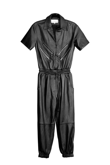 - Short sleeves, front zipper, elastic waistband and string